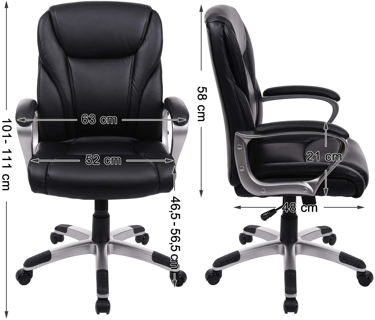 Colour: Black Material: Cover:PU (Front), PVC (Back); Padding:Foam, Inner-Spring (Cushion) ;Armrests: PP, Foam, PU; Five-Star Base: Nylon;Castor: PU Product Size: Overall Height: 101-111 cm Overall Width: 63 cm Overall Depth: 69 cm Seat Height: 46.5-56.5 cm Seat Width: 52 cm Seat Depth: 48 cm Armrest Height: 21 cm Backrest Height: 58 cm Base Diameter: 64 cm Wheel Diameter: 50 mm Axis Diameter: 11 mm Product Weight: 14 kg – Maximum Load Capacity: 120 kg Shipping list: 1 x Office Chair 1 x Allen Key 1 x Accessories Bag 1 x Instructions
